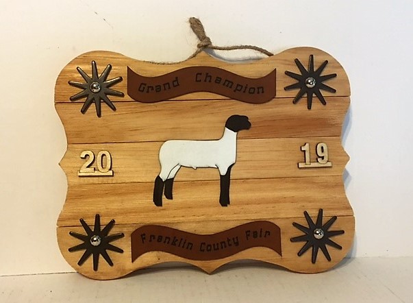 Wooden fence - 10" and 12" now available!!! NEW - these wooden fence items can have any of our animals in the center. They are totally unique! We designed them for a magnet on the back smaller and now have made them bigger like our tributes. They can be hung on the wall in your office, barn, home or anywhere you want to show this award.. We can do CHAMPION or RES. CHAMPION on the top or have it plain without that. The sign above the animal swings. Great unique award! Won't see these anywhere else. They are a Country Images original! Made in the USA. |