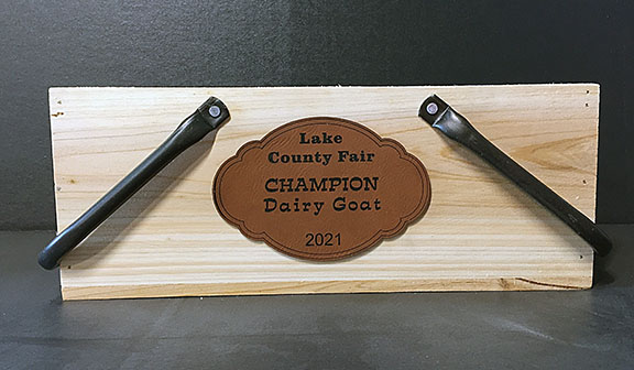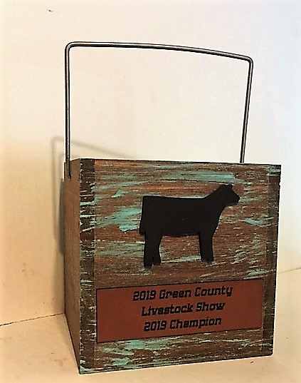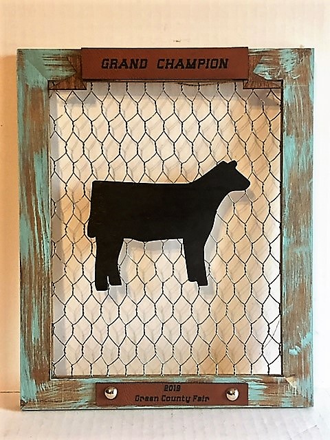 Wooden fence - 10" and 12" now available!!! NEW - these wooden fence items can have any of our animals in the center. They are totally unique! We designed them for a magnet on the back smaller and now have made them bigger like our tributes. They can be hung on the wall in your office, barn, home or anywhere you want to show this award.. We can do CHAMPION or RES. CHAMPION on the top or have it plain without that. The sign above the animal swings. Great unique award! Won't see these anywhere else. They are a Country Images original! Made in the USA. |